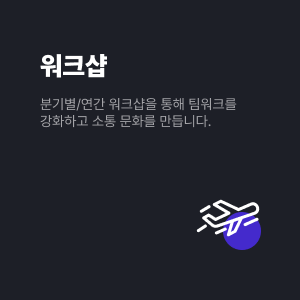 분기별/연간 워크샵을 통해 팀워크를 강화하고 소통 문화를 만듭니다.