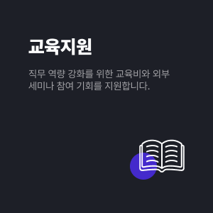 직무 역량 강화를 위한 교육비와 외부 세미나 참여 기회를 지원합니다.