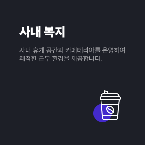 사내 휴게 공간과 카페테리아를 운영하여 쾌적한 근무 환경을 제공합니다.