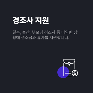 결혼, 출산, 부모님 경조사 등 다양한 상황에 경조금과 휴가를 지원합니다.